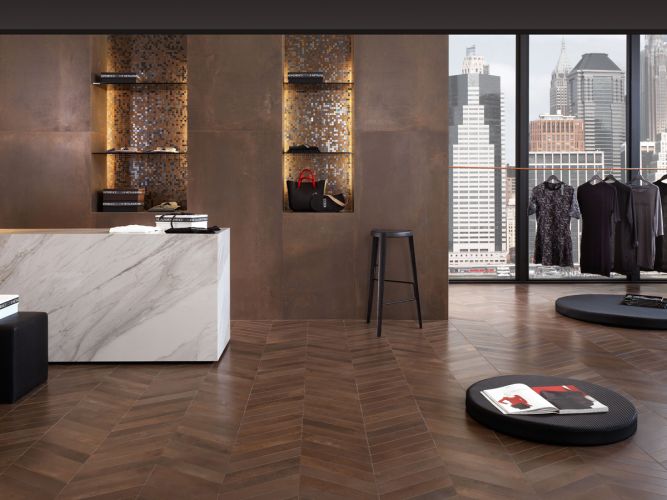 Le carrelage style Métallique allie design industriel et sophistication moderne.